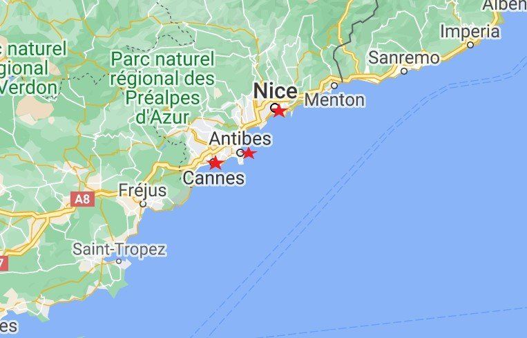 Zone d'intervention de la Miroiterie de Cannes 06400